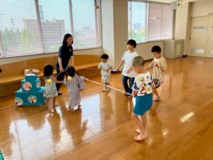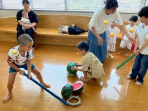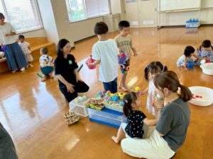 本庄こども園の先生が持ってきてくださったおもちゃで遊んだり、