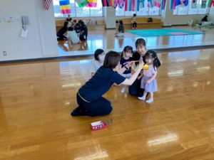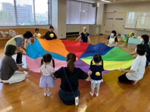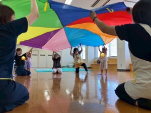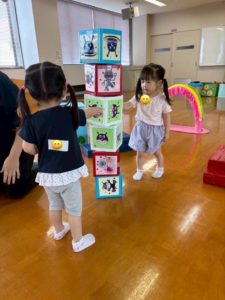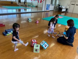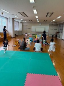 後半は、運動会らしく子どもたちが広いお部屋をたくさん走り回って